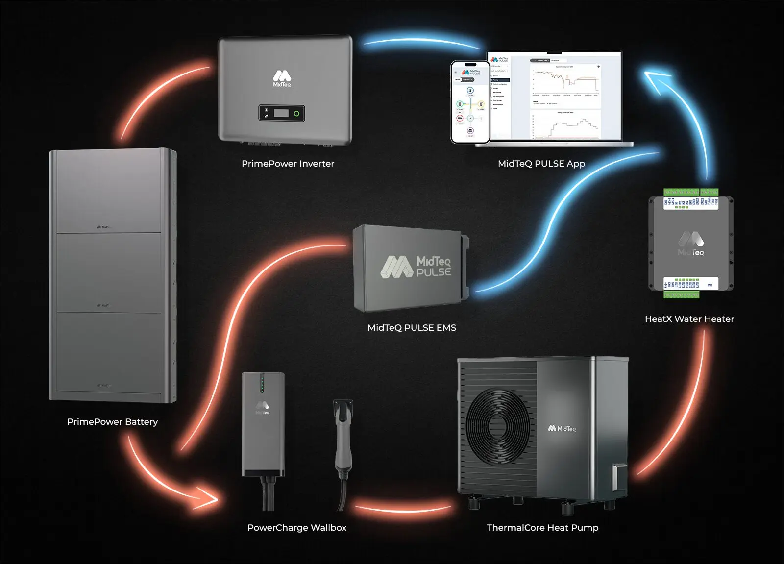 All MidTeQ energy products are perfectly coordinated and connected into an intelligent ecosystem through MidTeQ PULSE.
